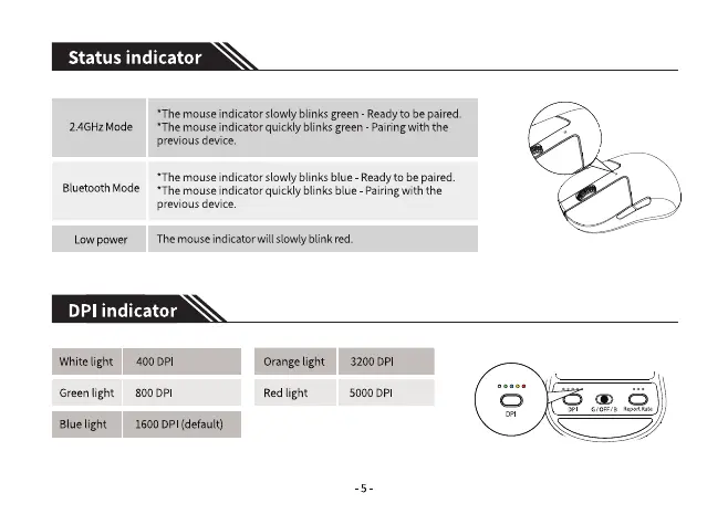 •The mouseindicatorquickly blinks green- Pairingwith the