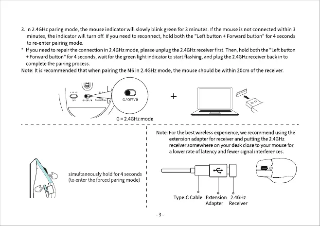 Note:It is recommended that when pairing the M6 in 2.4GHzmode, the mouseshould be within 20cm of the receiver.
