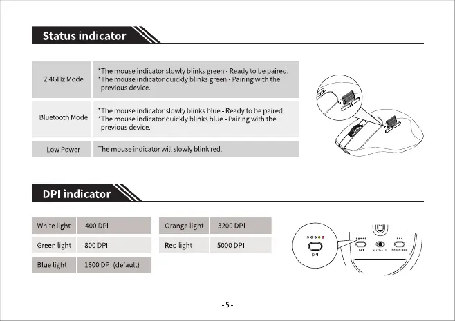 •The mouseindicatorquickly blinksgreen- Pairingwith the