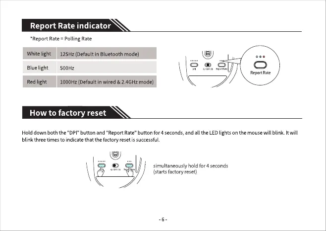 Keychron M6 - Report Rate Indicator; Polling Rate Explanation; How to Factory Reset