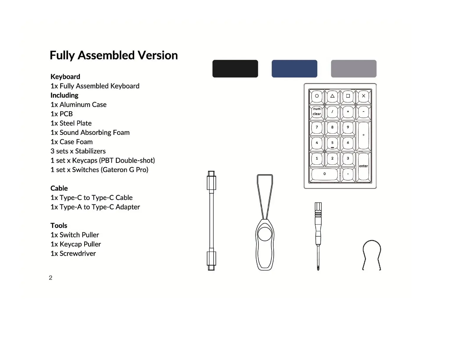 Keychron Q0 - Fully Assembled Version Components; Keyboard Components Included; Cables and Adapters Provided; Included Setup Tools
