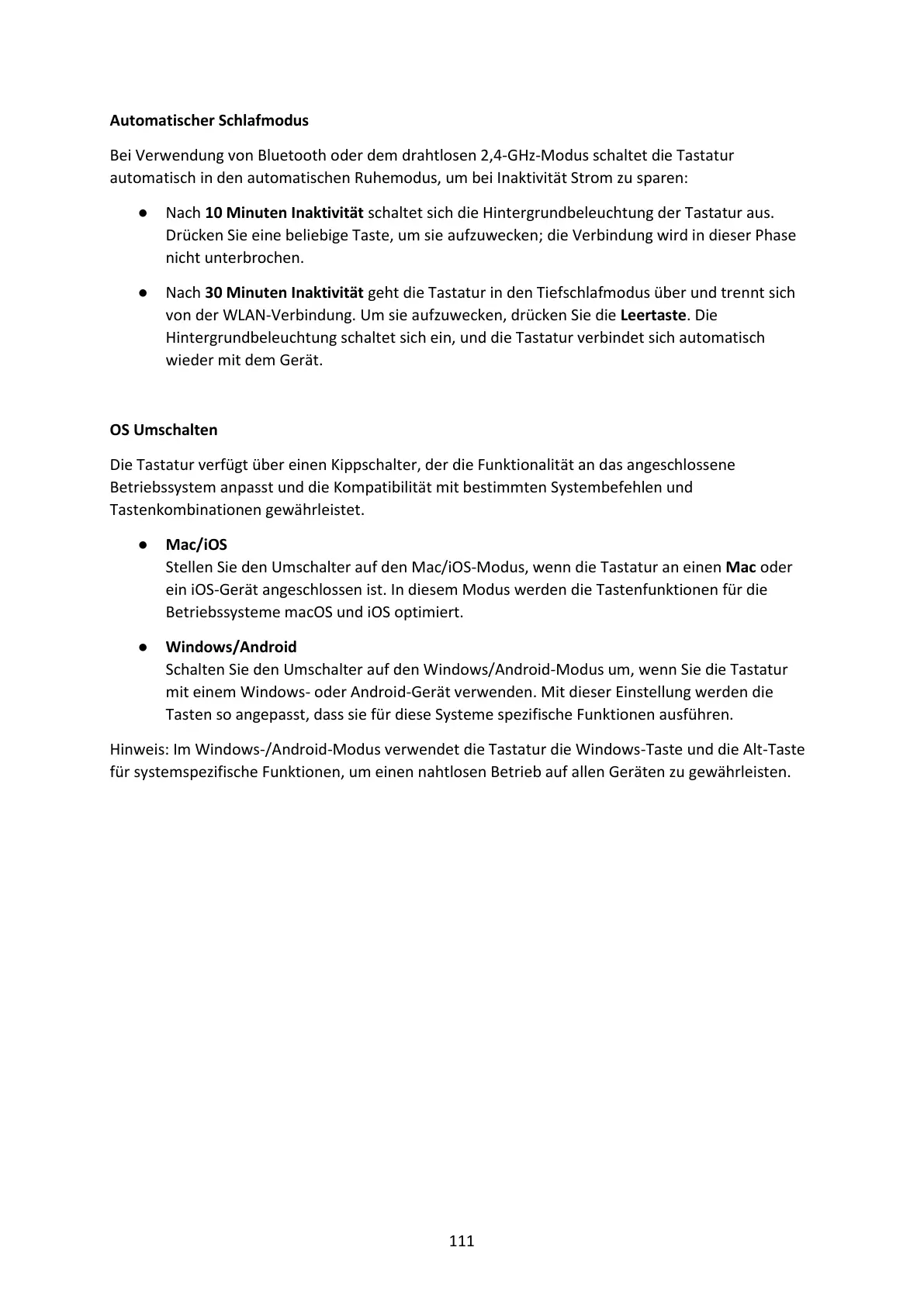 Hinweis: Im Windows-/Android-Modus verwendet die Tastatur die Windows-Taste und die Alt-Taste