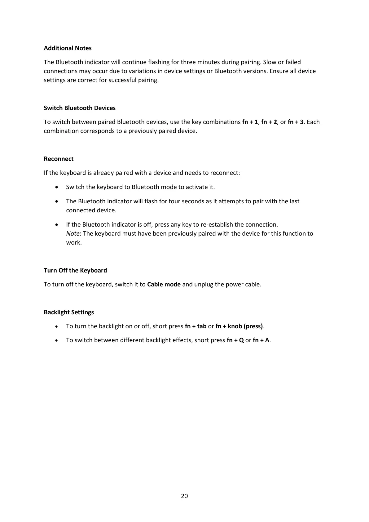 To switch between paired Bluetooth devices, use the key combinations fn + 1, fn + 2, or fn + 3. Each