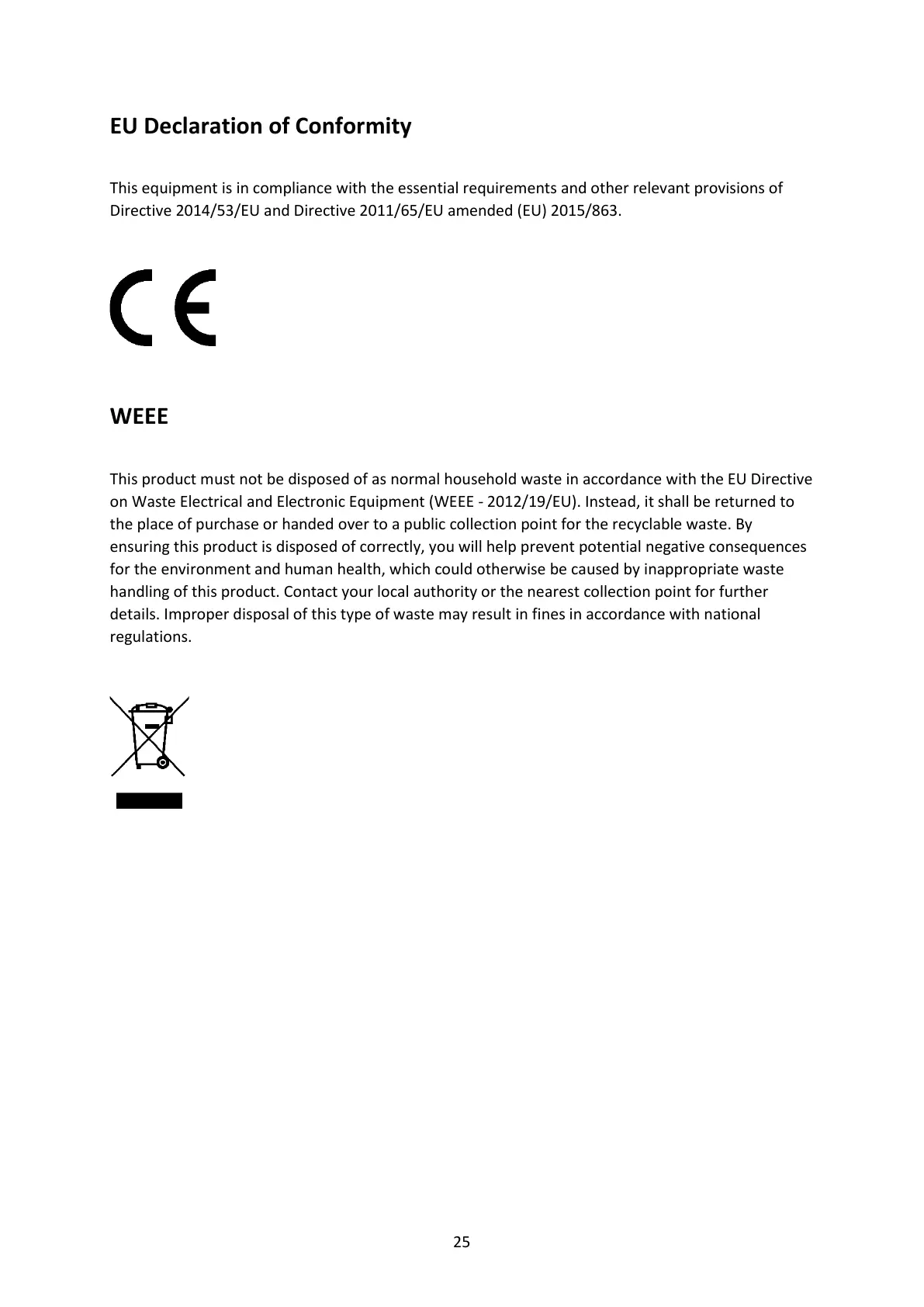 on Waste Electrical and Electronic Equipment (WEEE - 2012/19/EU). Instead, it shall be returned to