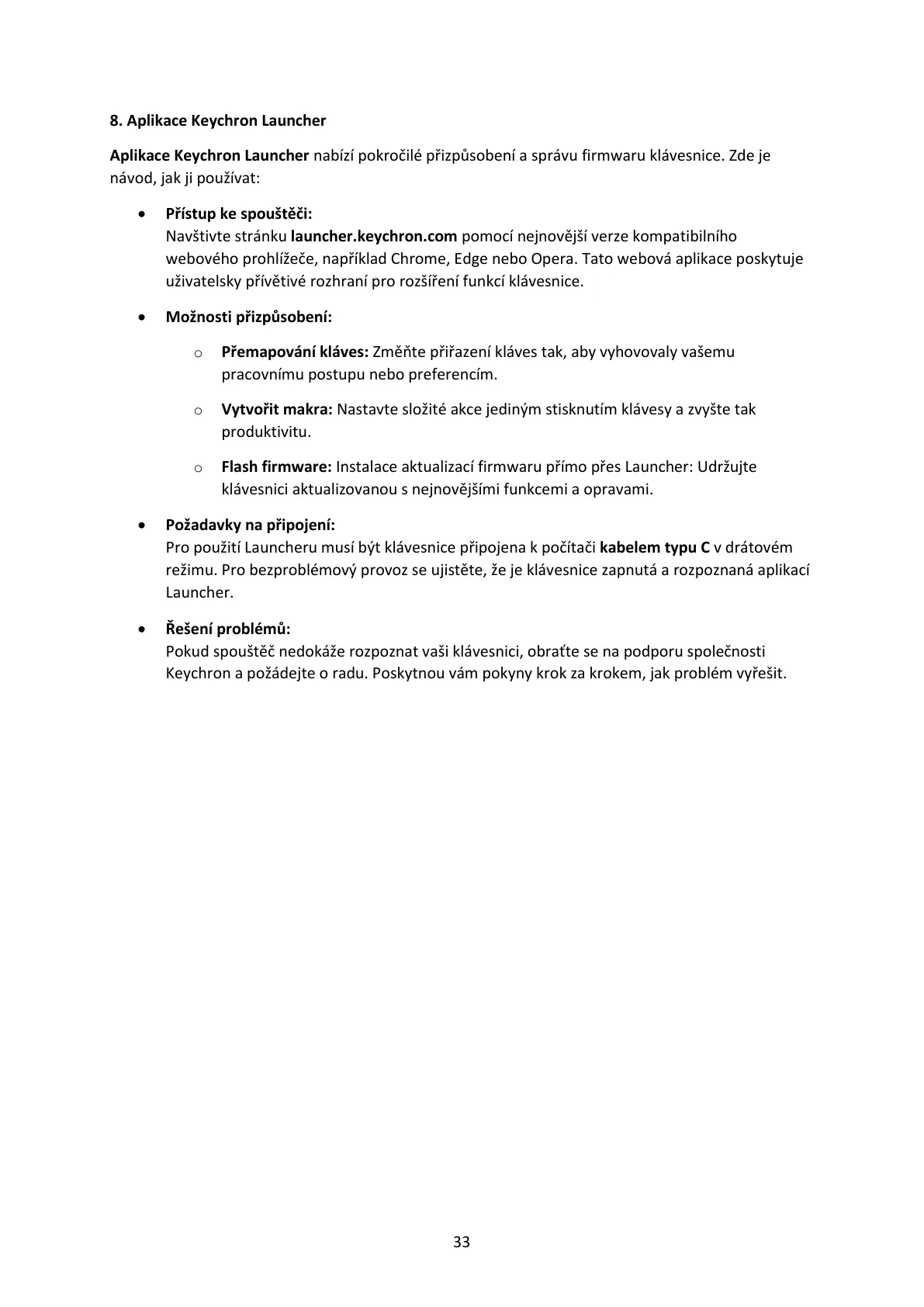 Navštivte stránku launcher.keychron.com pomocí nejnovější verze kompatibilního