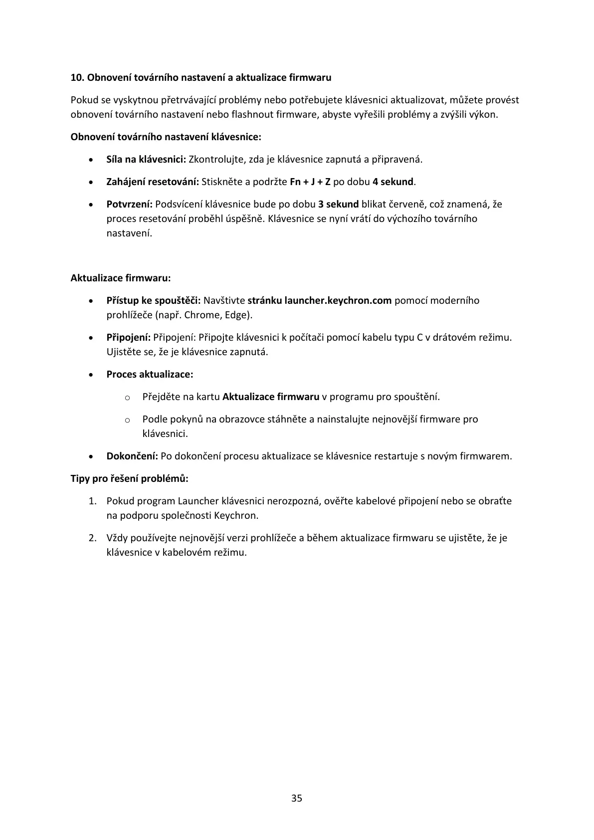 10. Obnovení továrního nastavení a aktualizace firmwaru