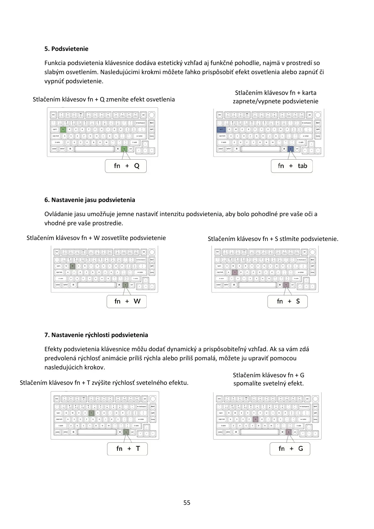 Stlačením klávesov fn + T zvýšite rýchlosť svetelného efektu.