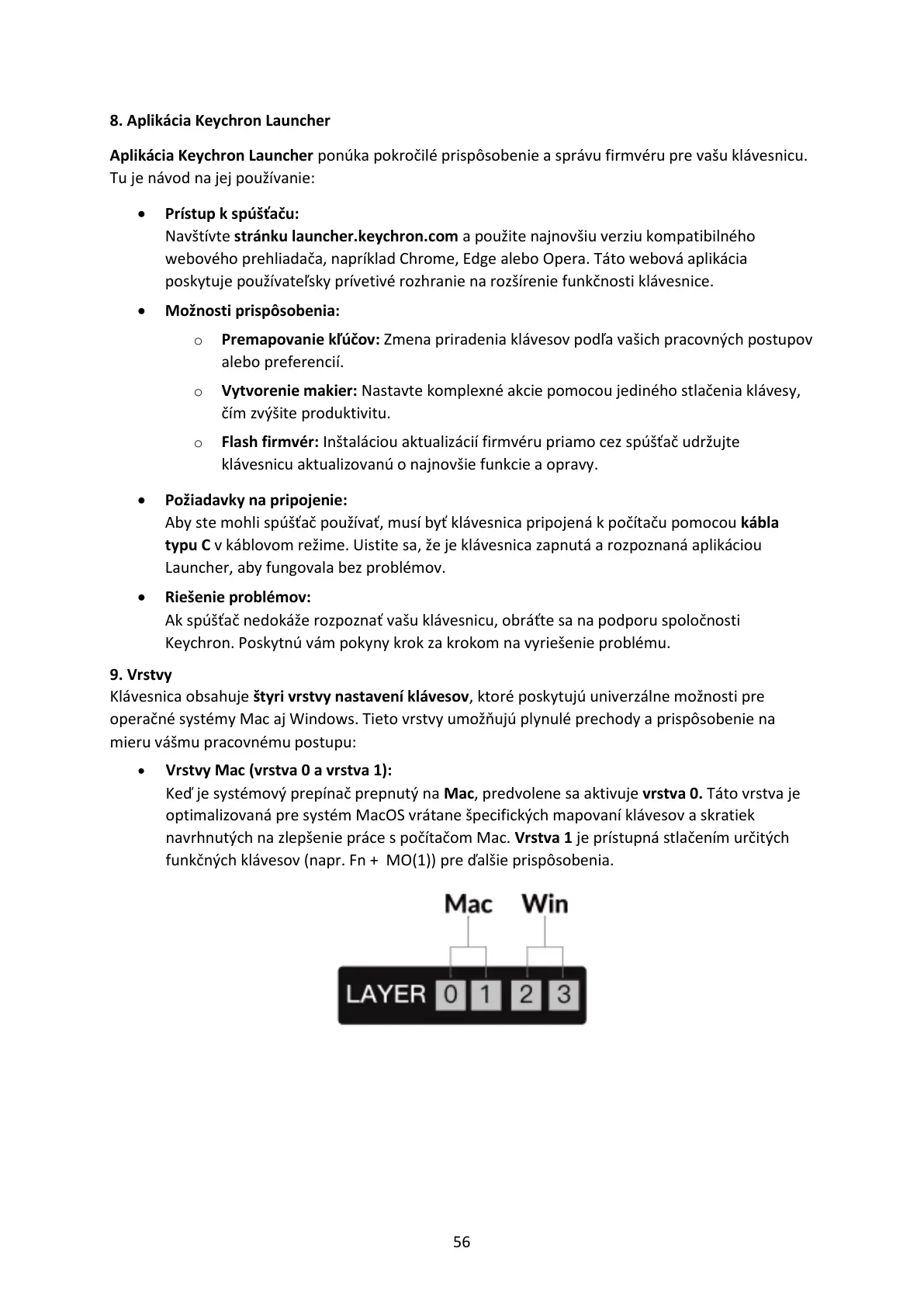 Keď je systémový prepínač prepnutý na Mac, predvolene sa aktivuje vrstva 0. Táto vrstva je