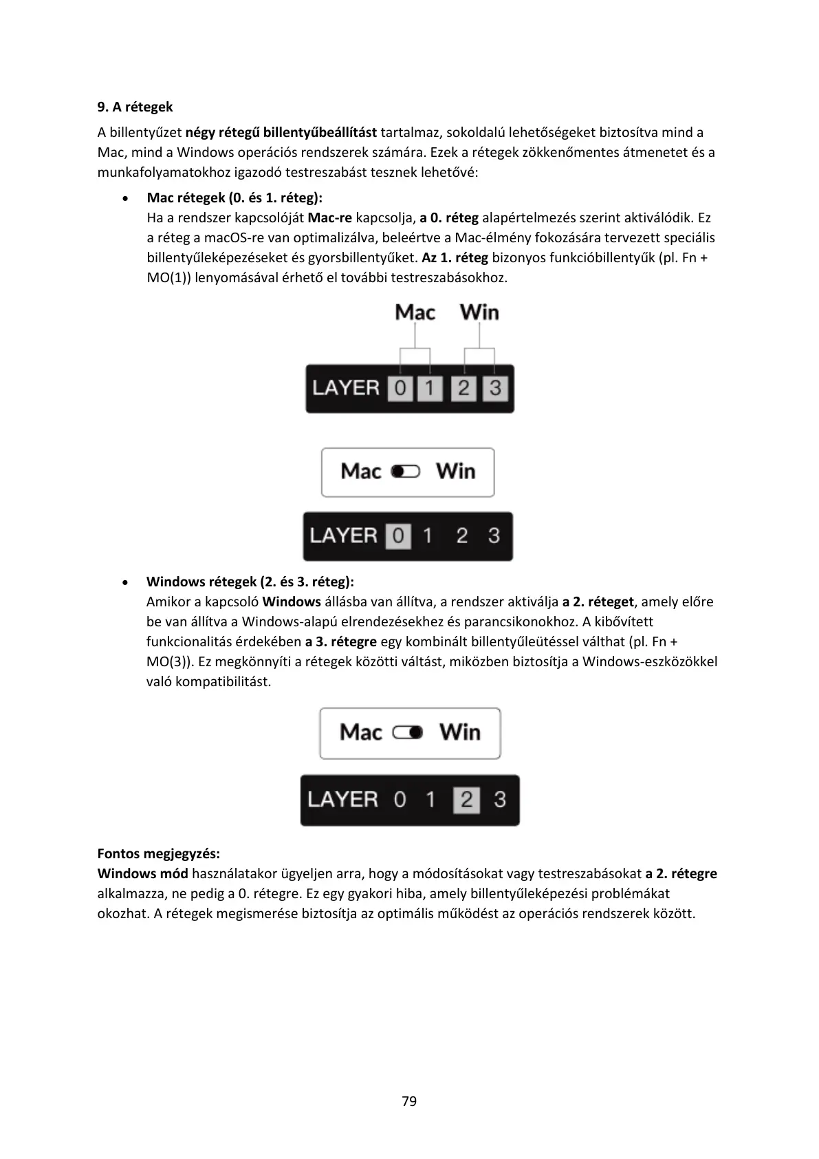 Ha a rendszer kapcsolóját Mac-re kapcsolja, a 0. réteg alapértelmezés szerint aktiválódik. Ez