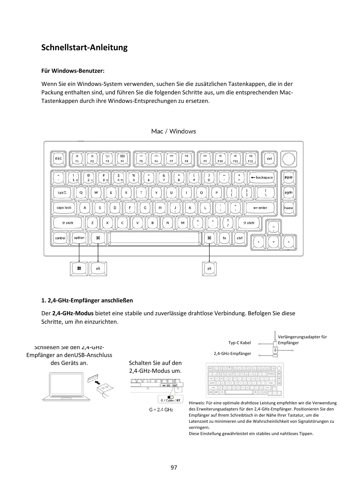 Wenn Sie ein Windows-System verwenden, suchen Sie die zusätzlichen Tastenkappen, die in der