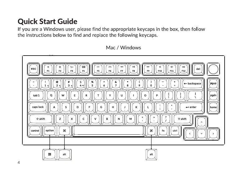 If you are a Windows user, please find the appropriate keycaps in the box, then follow