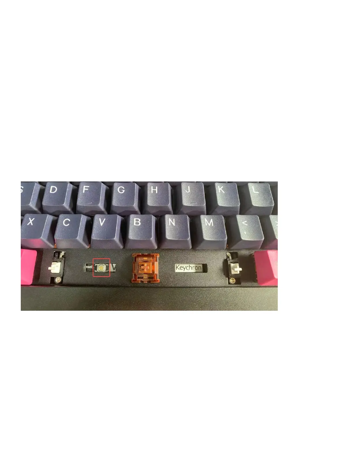 4. Remove the space bar keycap to find the reset button on the left side of the space