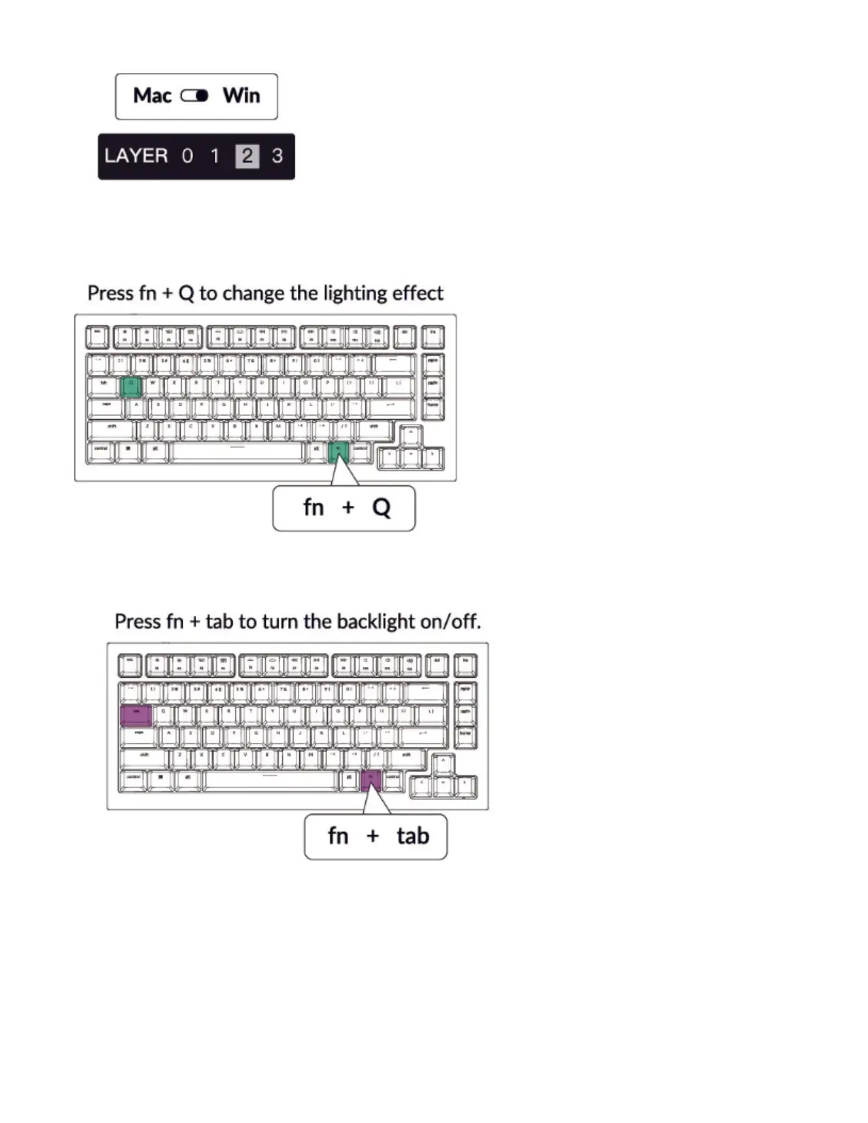 Keychron Q1 - Backlight Control; Lighting Effect Selection; Backlight On;Off Toggle