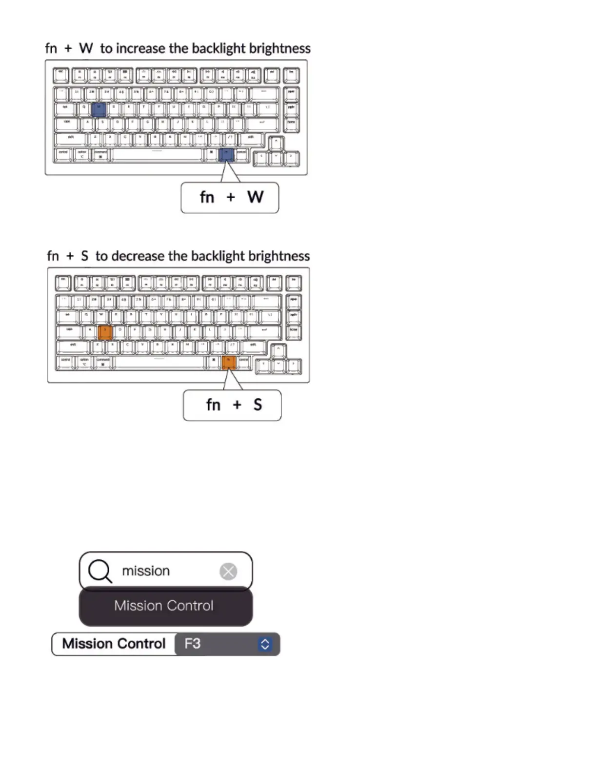 Keychron Q1 - Backlight Brightness Adjustment; Increase Brightness; Decrease Brightness; Mac Specific Shortcuts