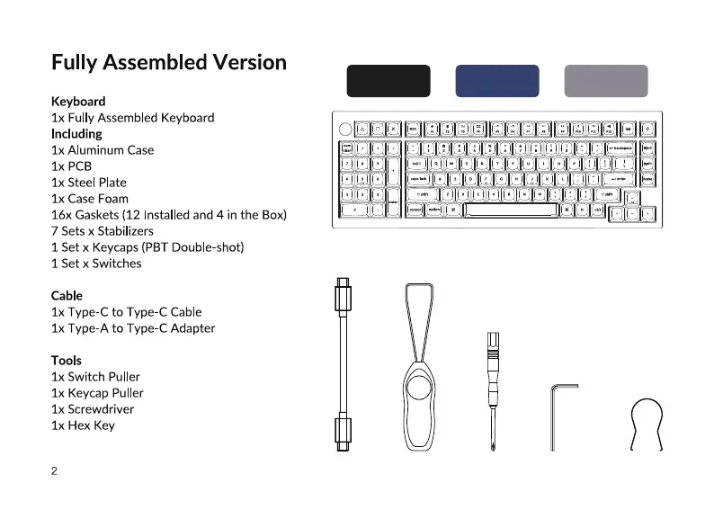 Keychron Q12 - Fully Assembled Version Components; Keyboard Components; Cables Included; Included Tools