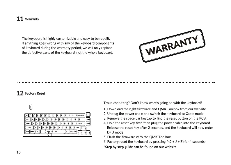 Release the reset key after 2 seconds, and the keyboard will now enter