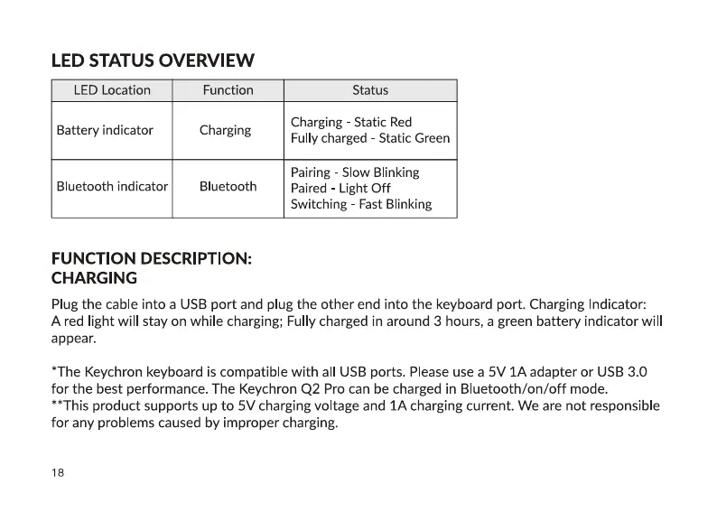 for the best performance. The Keychron Q2 Pro can be charged in Bluetooth/on/off mode.