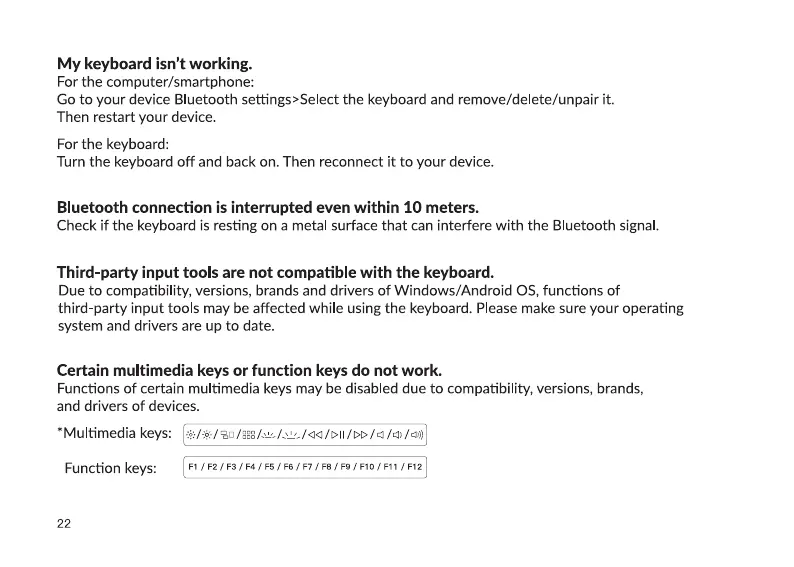 Check if the keyboard is resting on a metal surface that can interfere with the Bluetooth signal.