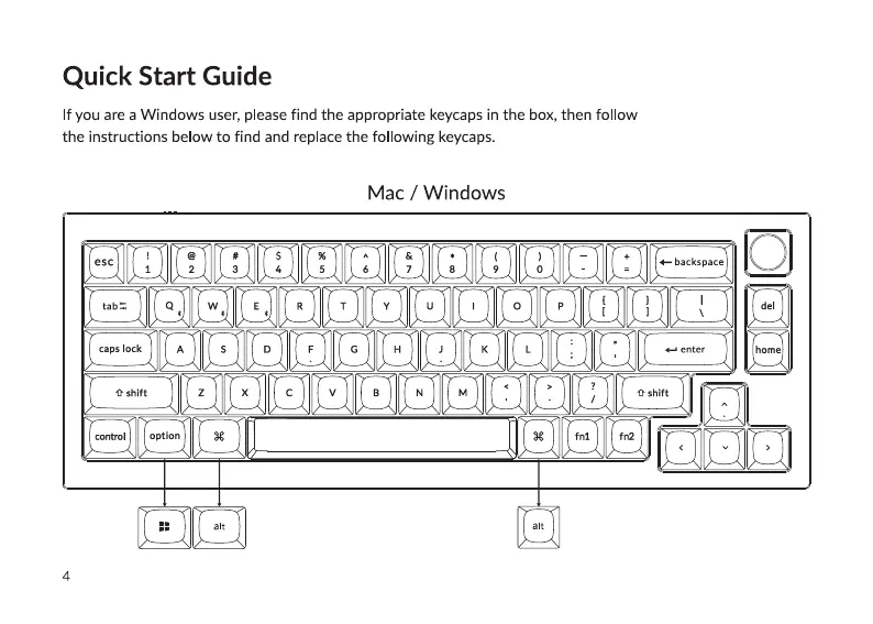 If you are a Windows user, please find the appropriate keycaps in the box, then follow