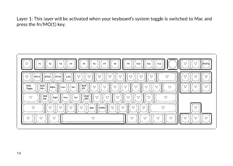 Layer 1: This layer will be activated when your keyboard's system toggle is switched to Mac and