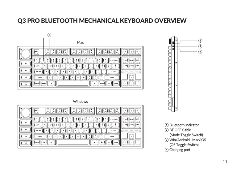 Keychron Q3 Pro - Keyboard Layout Overview; Mac and Windows Layout Identification; Key Feature Indicators and Switches