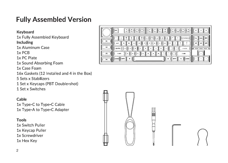 Keychron Q3 Pro - Fully Assembled Version Contents; Included Components: Keyboard, Cable, and Tools