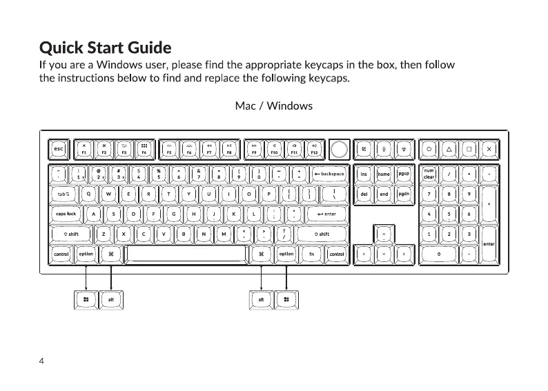If you are a Windows user, please find the appropriate keycaps in the box, then follow