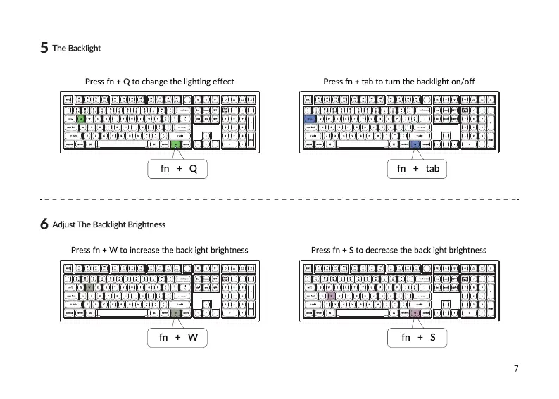 Keychron Q6 Pro - Backlight Customization; Changing Lighting Effects; Backlight On;Off Control; Adjusting Brightness
