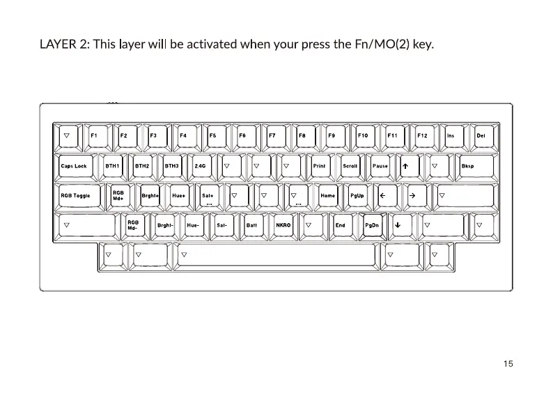 LAYER 2: This layer will be activated when your press the Fn/MO(2) key.