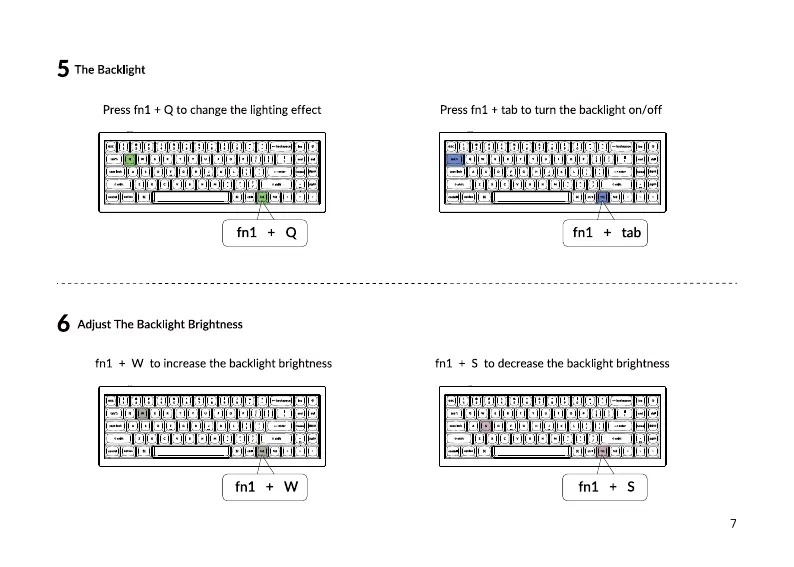 Keychron Q7 - Backlight Customization; Changing Lighting Effects; Adjusting Backlight Brightness