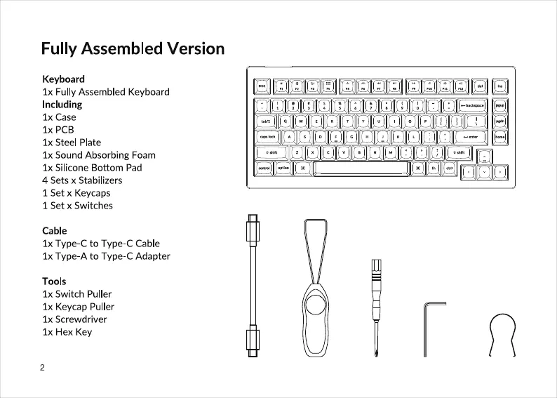 Keychron V1 - Keychron V1 Fully Assembled Version Contents; Included Keyboard Components; Included Cables and Adapters; Included Tools for Maintenance