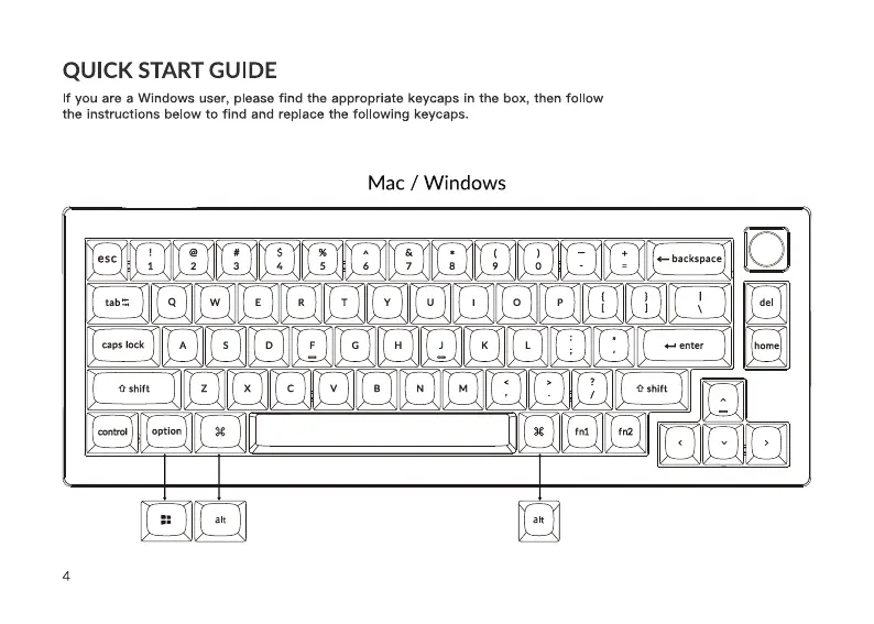 If you are a Windows user, please find the appropriate keycaps in the box, then follow