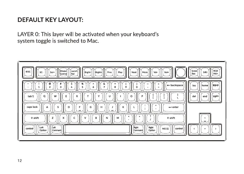 Keychron V3 - Default Key Layout: Layer 0; Layer 0 Functionality (Mac)