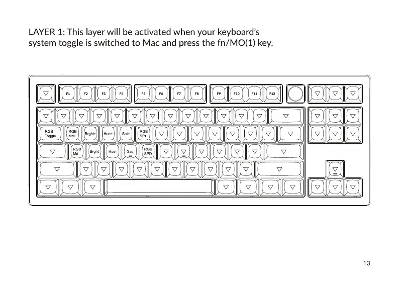 Keychron V3 - Default Key Layout: Layer 1; Layer 1 Functionality (Mac + Fn;MO(1))