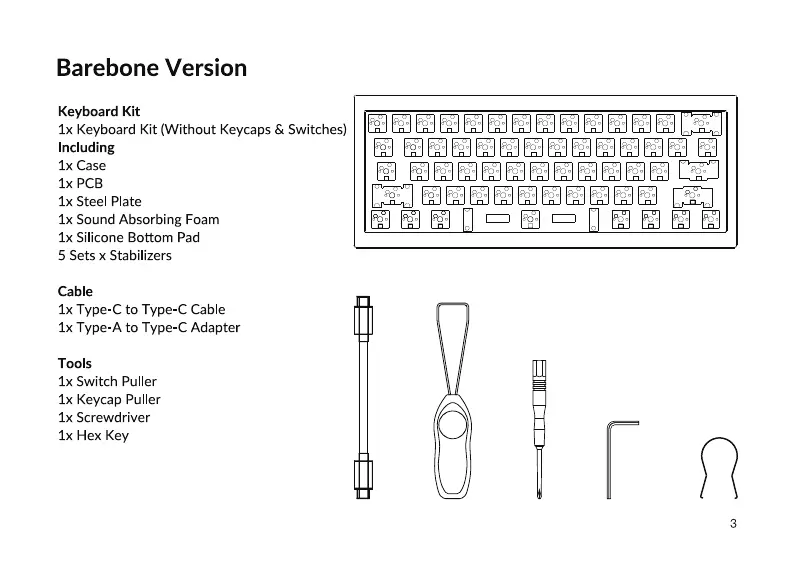 Keychron V4 - Barebone Version; Keyboard Kit Components; Included Cables; Included Tools