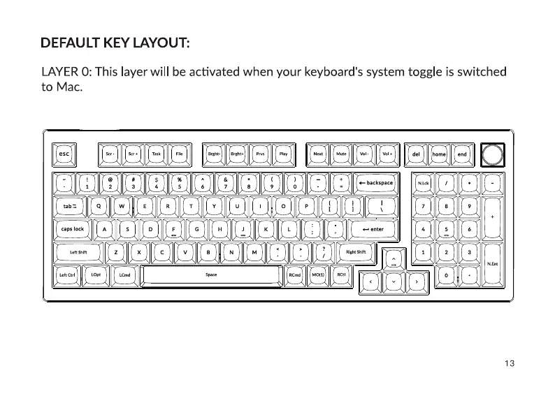 LAYER O: This layer will be activated when your keyboard's system toggle is switched