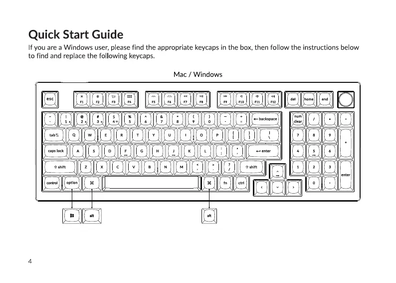 If you are a Windows user, please find the appropriate keycaps in the box, then follow the instructions below