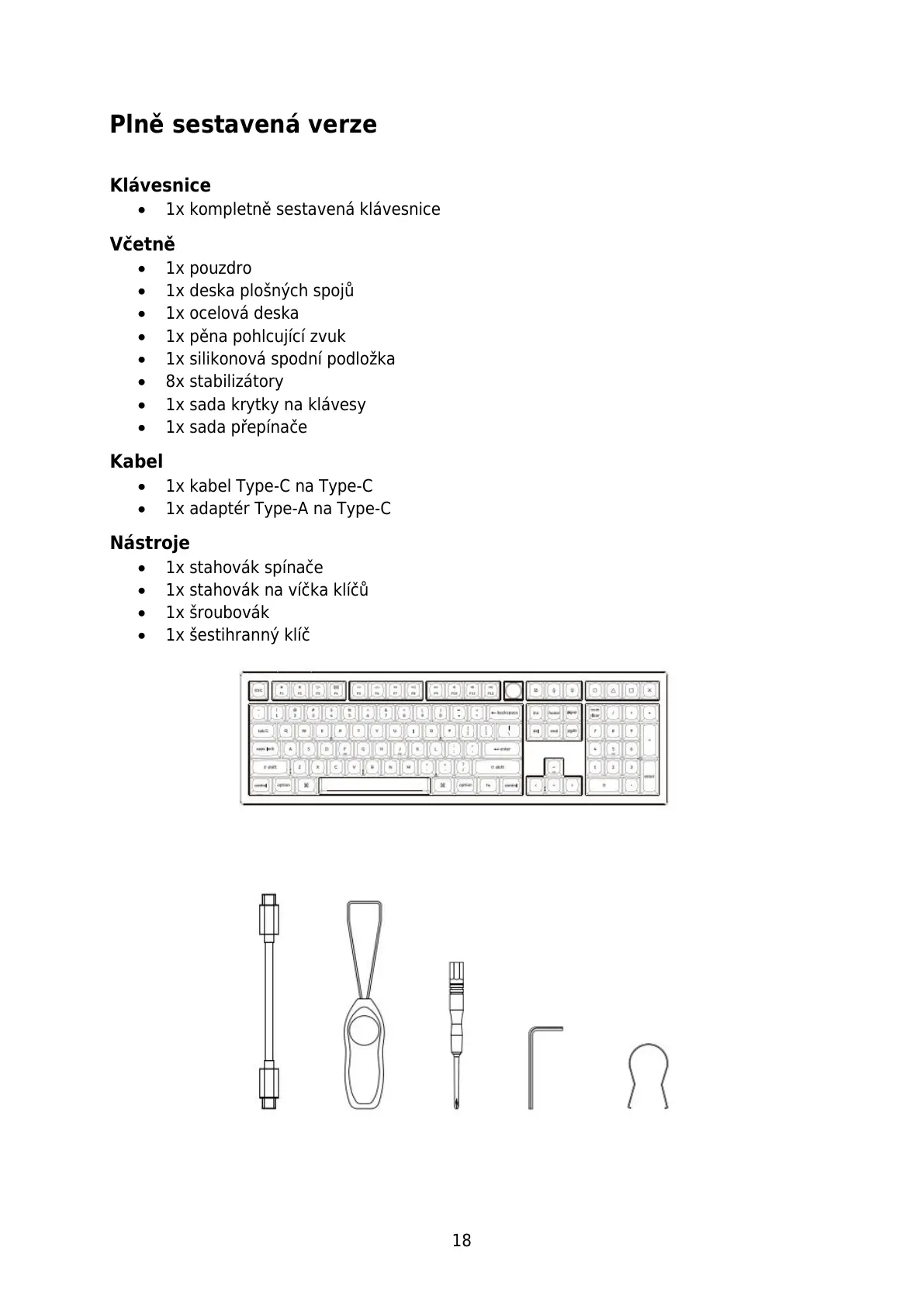 1x kompletně sestavená klávesnice
