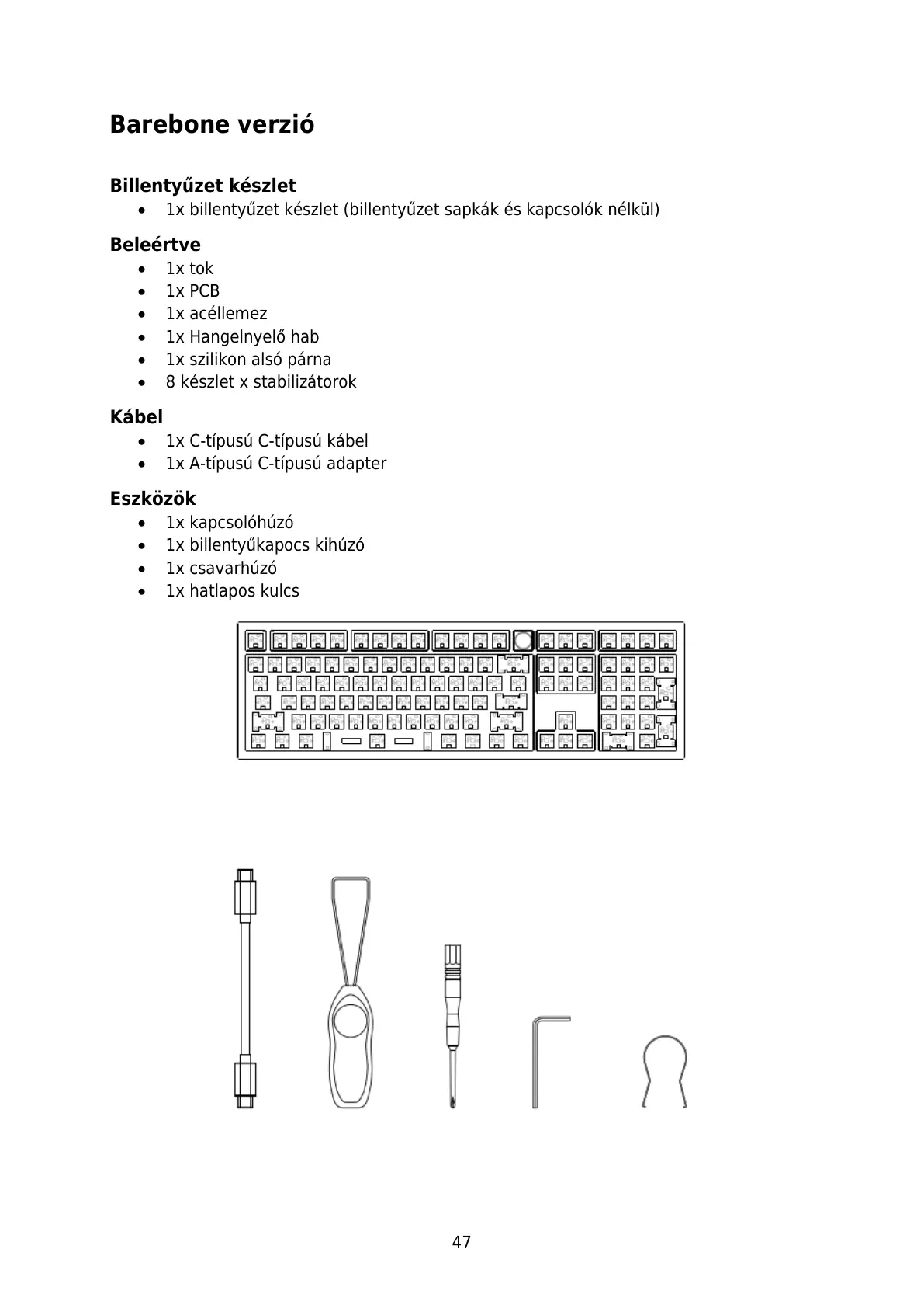1x billentzet készlet (billentzet sapkák és kapcsolók nélkül)