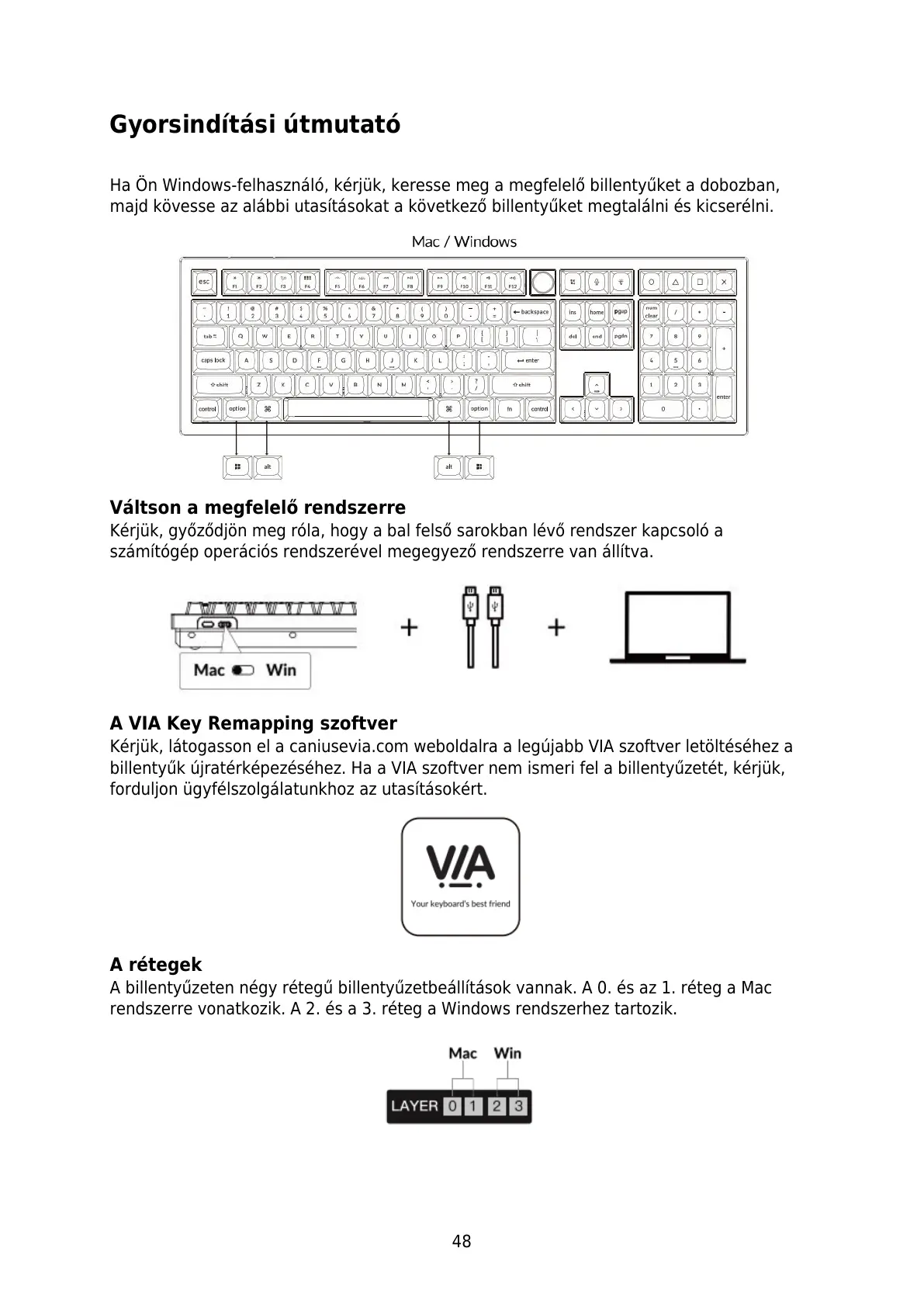 billentyűk újratérképezéséhez. Ha a VIA szoftver nem ismeri fel a billentyűzetét, kérjük,