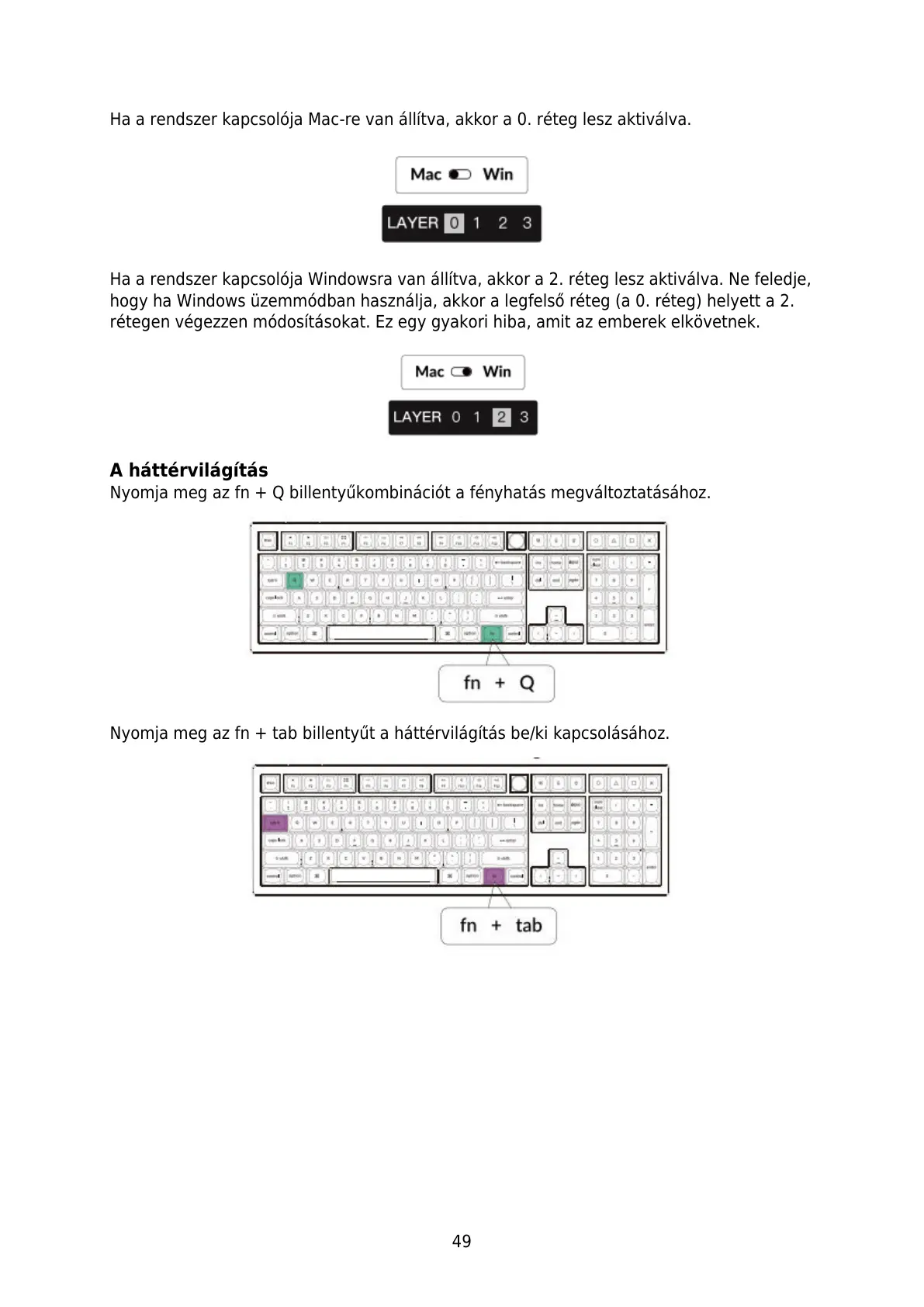 Ha a rendszer kapcsolója Mac-re van állítva, akkor a 0. réteg lesz aktiválva.