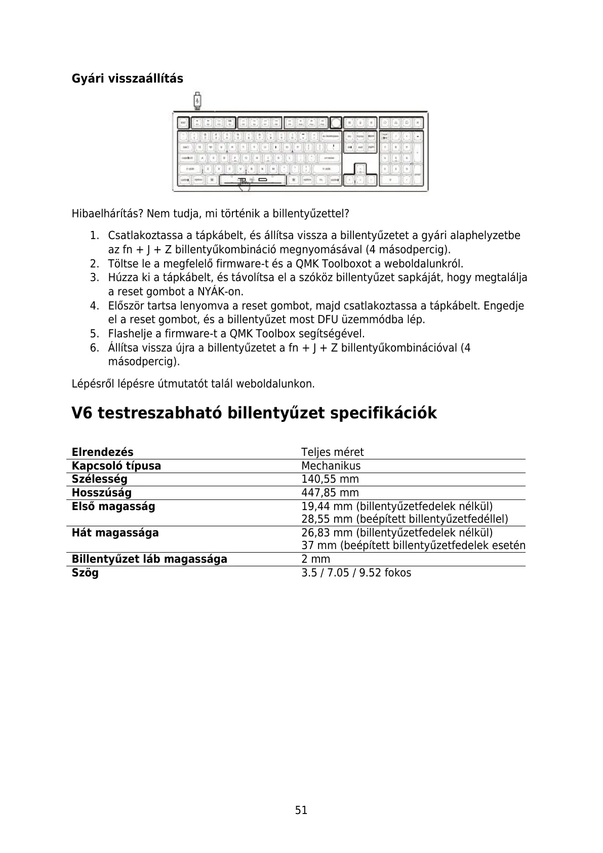 V6 testreszabható billentyűzet specifikációk