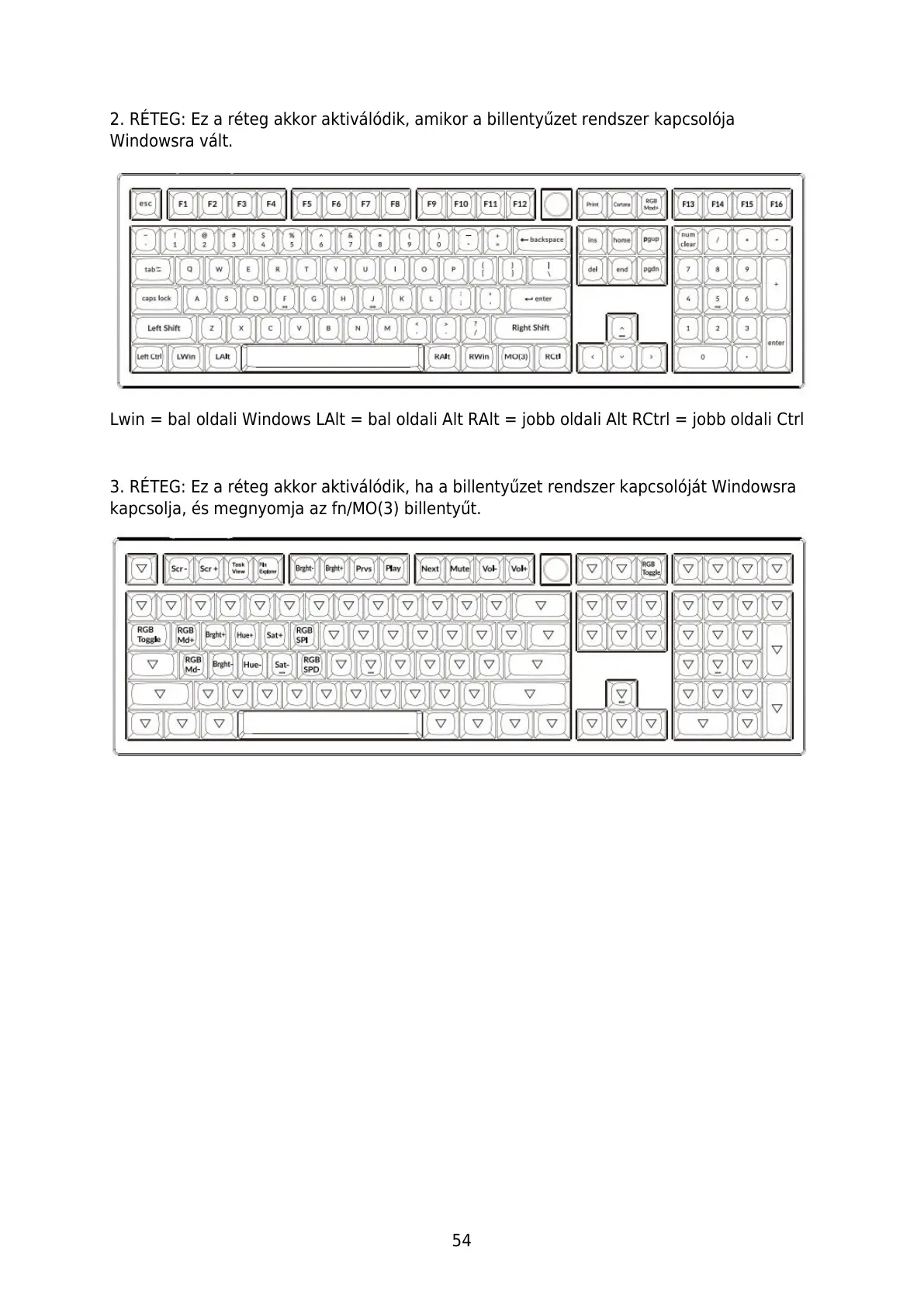 3. RÉTEG: Ez a réteg akkor aktiválódik, ha a billentyűzet rendszer kapcsolóját Windowsra