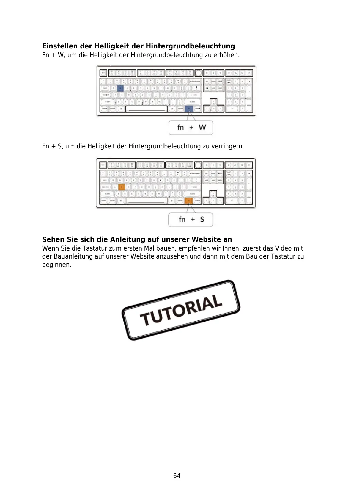 Wenn Sie die Tastatur zum ersten Mal bauen, empfehlen wir Ihnen, zuerst das Video mit