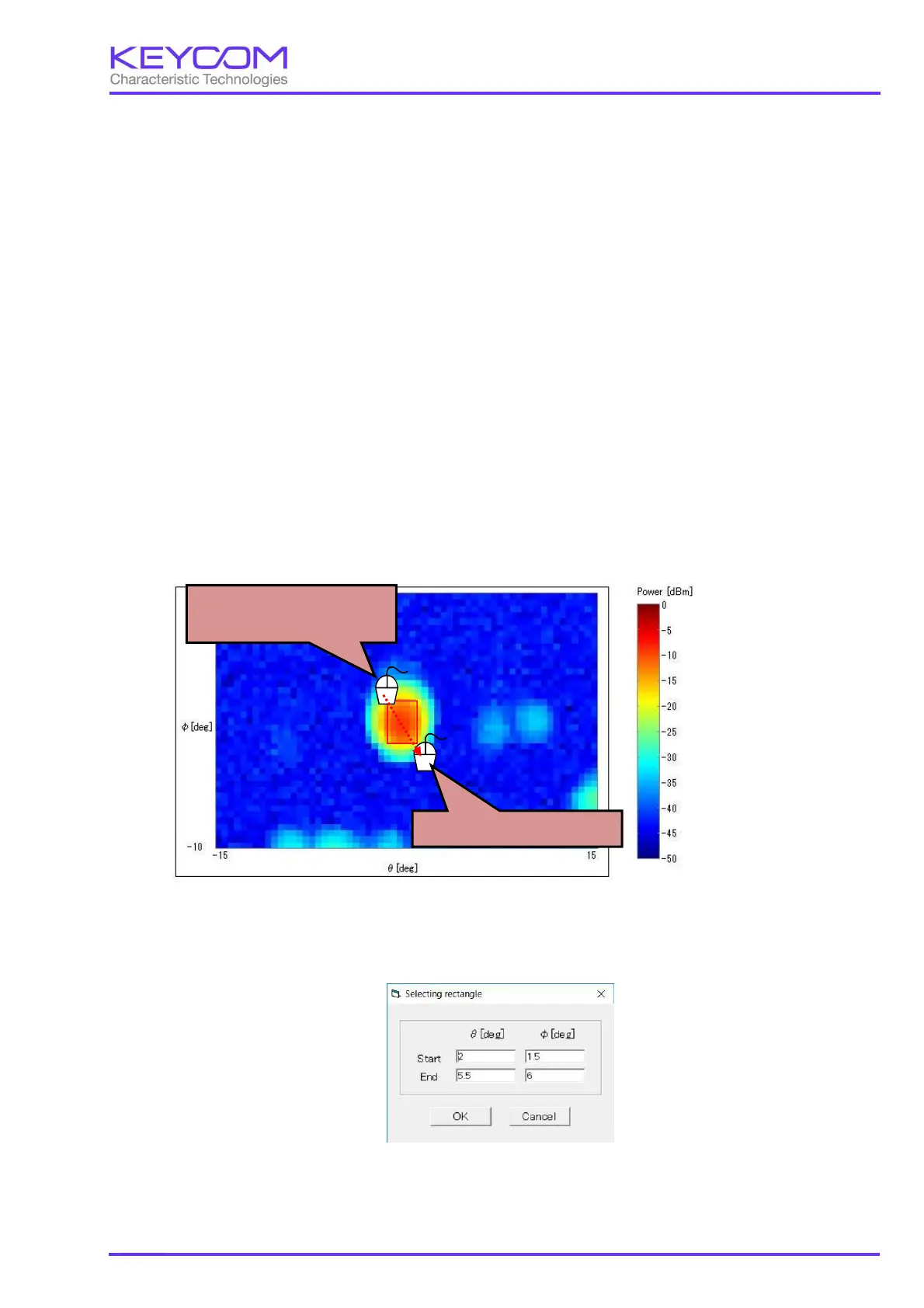 (Reference) To check the actual θ, φ angle of the specified rectangular range, you can check the angles of the start