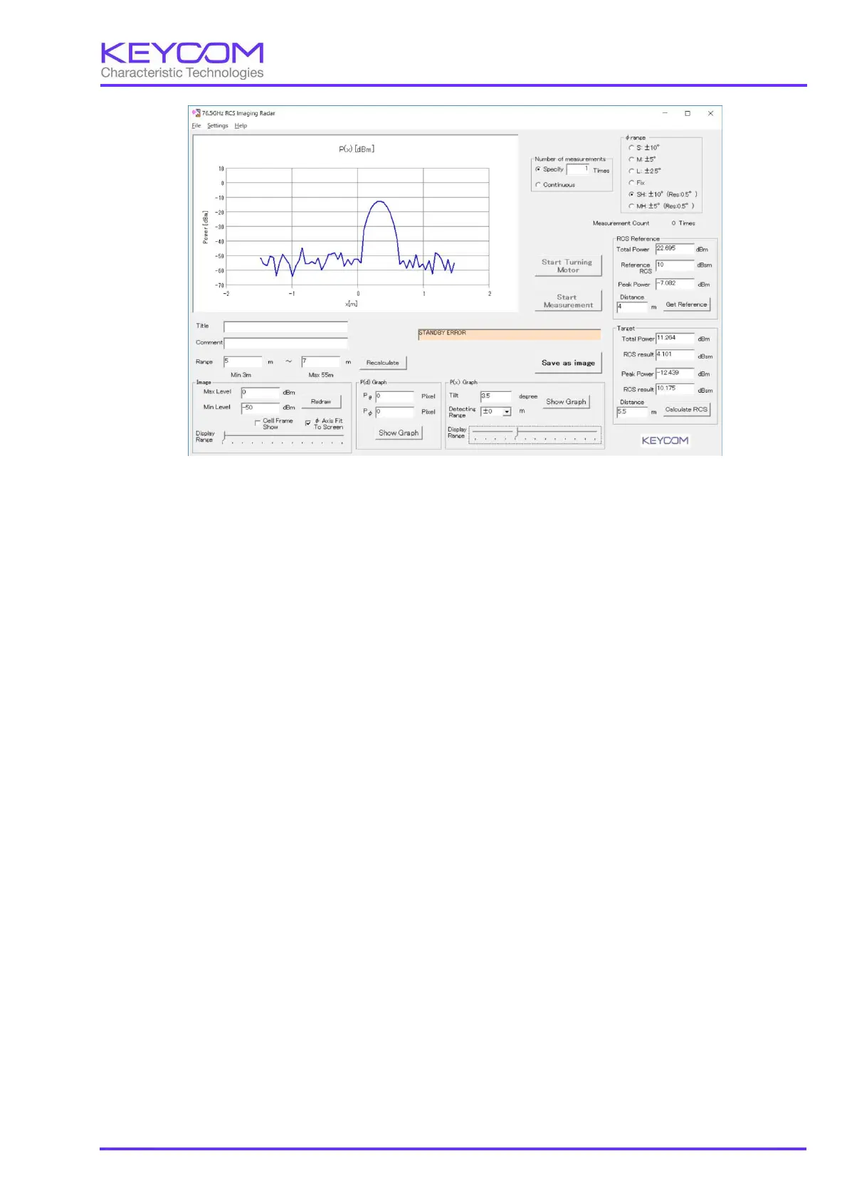 RCS calculation described in 7 above becomes possible. However, 0 m point correction value, distance range,