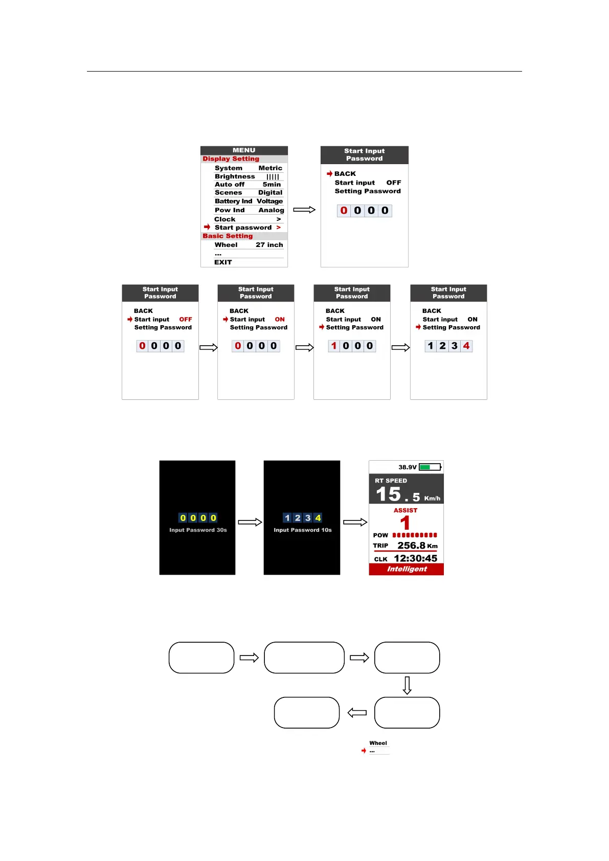 8.8 Start password : Press POWER button get into the password setting menu. If you