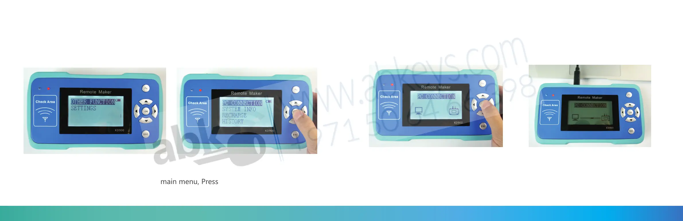 Keydiy KD900 - PC Connection Check; System Information; Recharge Function; History Function