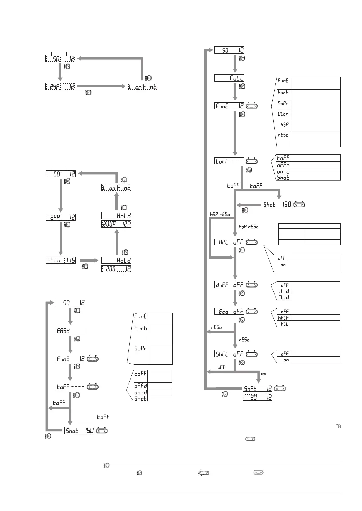 Note:•Press the mode button ( ) for a minimum of three seconds to return to the display of the CV from any menu selection stage. To return to the
