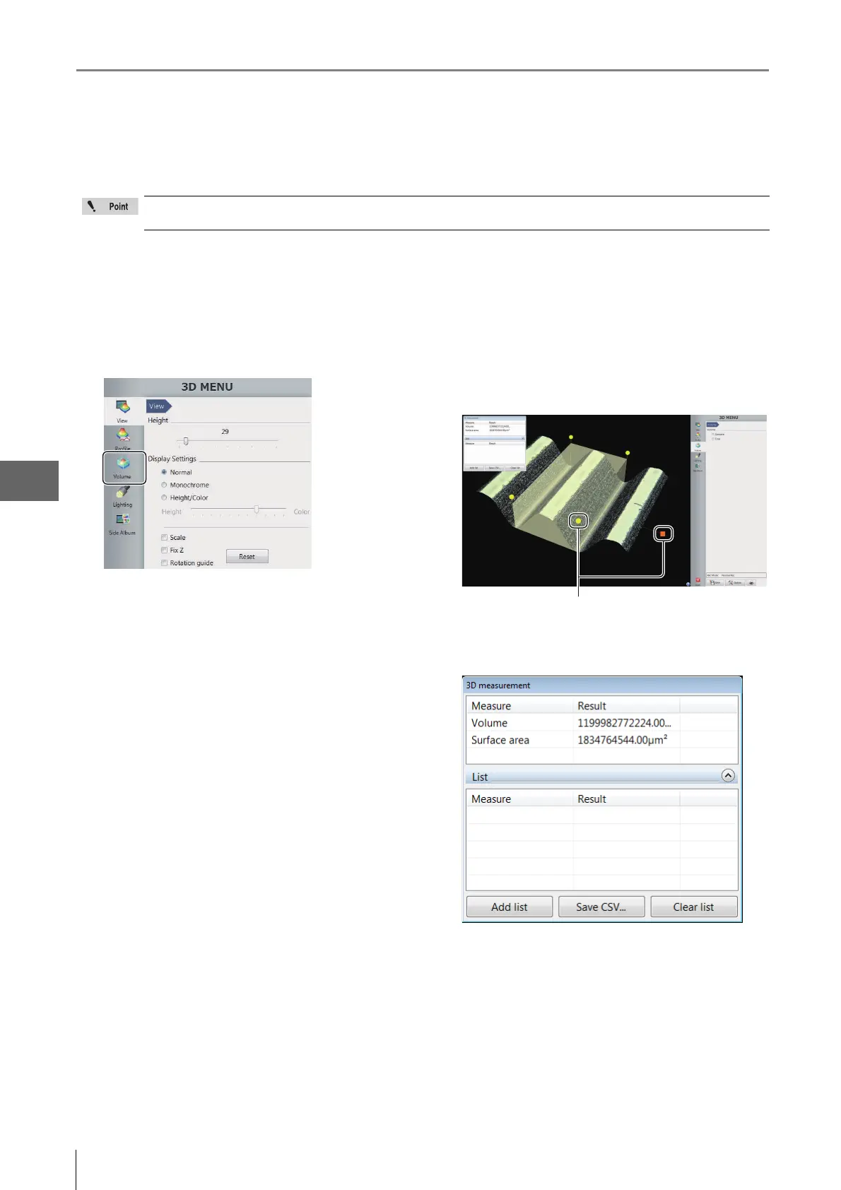 The separately sold "3D Profile Measurement Application" (model VHX-H4M) is required to perform volume